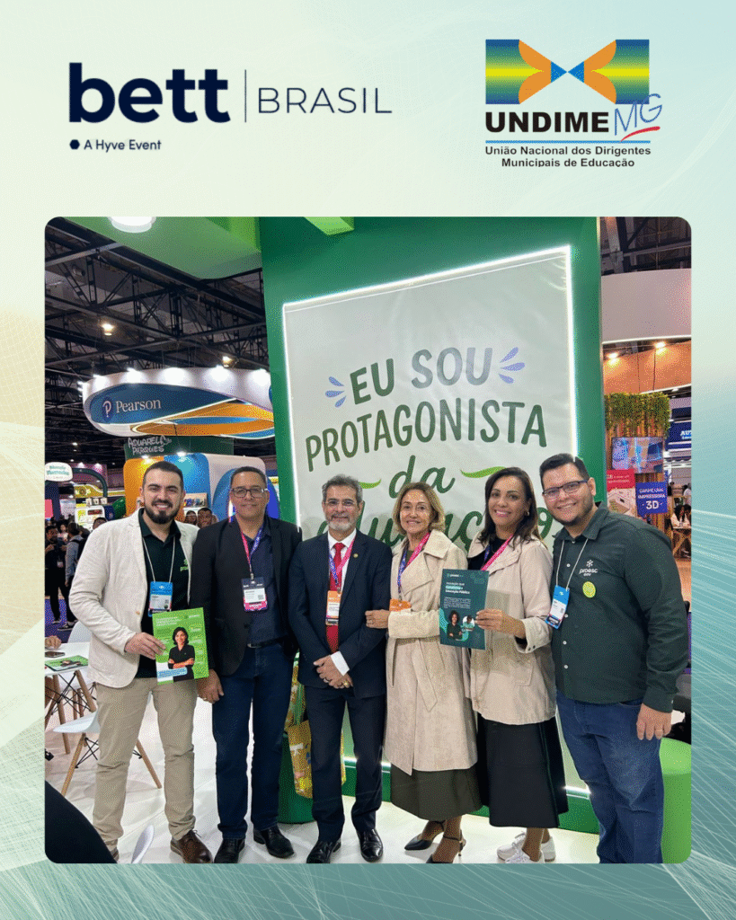 A Undime MG, representada por Suely Duque Rodarte (Diretora Executiva) e Denize Assunção (Assessora Administrativa-Financeira), junto à Undime Nacional, representada por seu presidente Alessio Costa, marcou presença no stand da PROESC. Recebidos por Felipe Ferreira (CEO) e Vitor Costa (Diretor de Projetos)